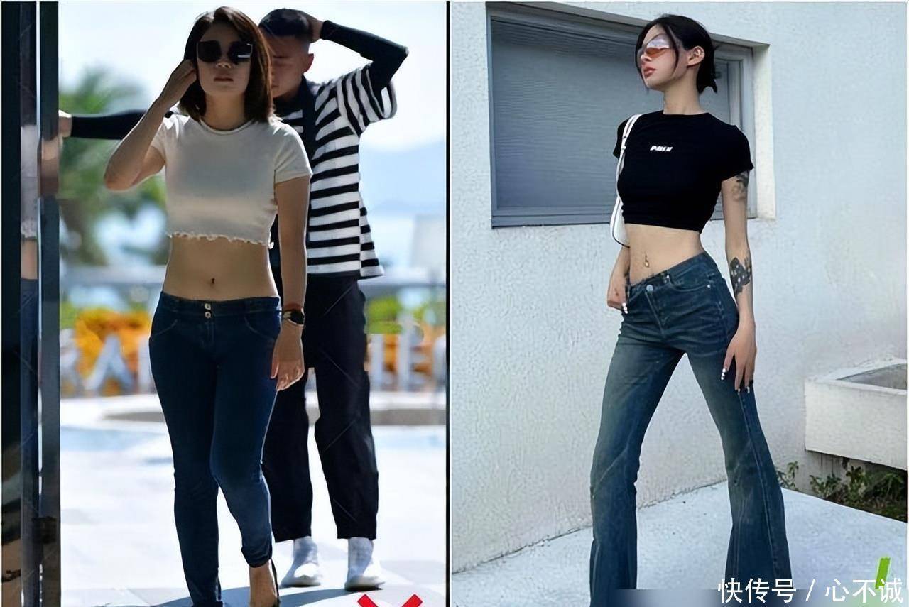 其实低腰裤的关键,就四个字:“选对版型”。首先裆线要高——不是那种掉裆掉到大腿根的,而是腰低但裆线刚好卡在合适的位置,这样不会显腿短;其次腰胯处要有松量,别选紧身到勒肉的,不然胯两边的印子真的能社死;最后裤长要极端——要么短到膝盖以上(像秦岚的牛仔短裤),要么长到盖过脚踝(拖地款),别选七分八分的,那才是显矮神器!