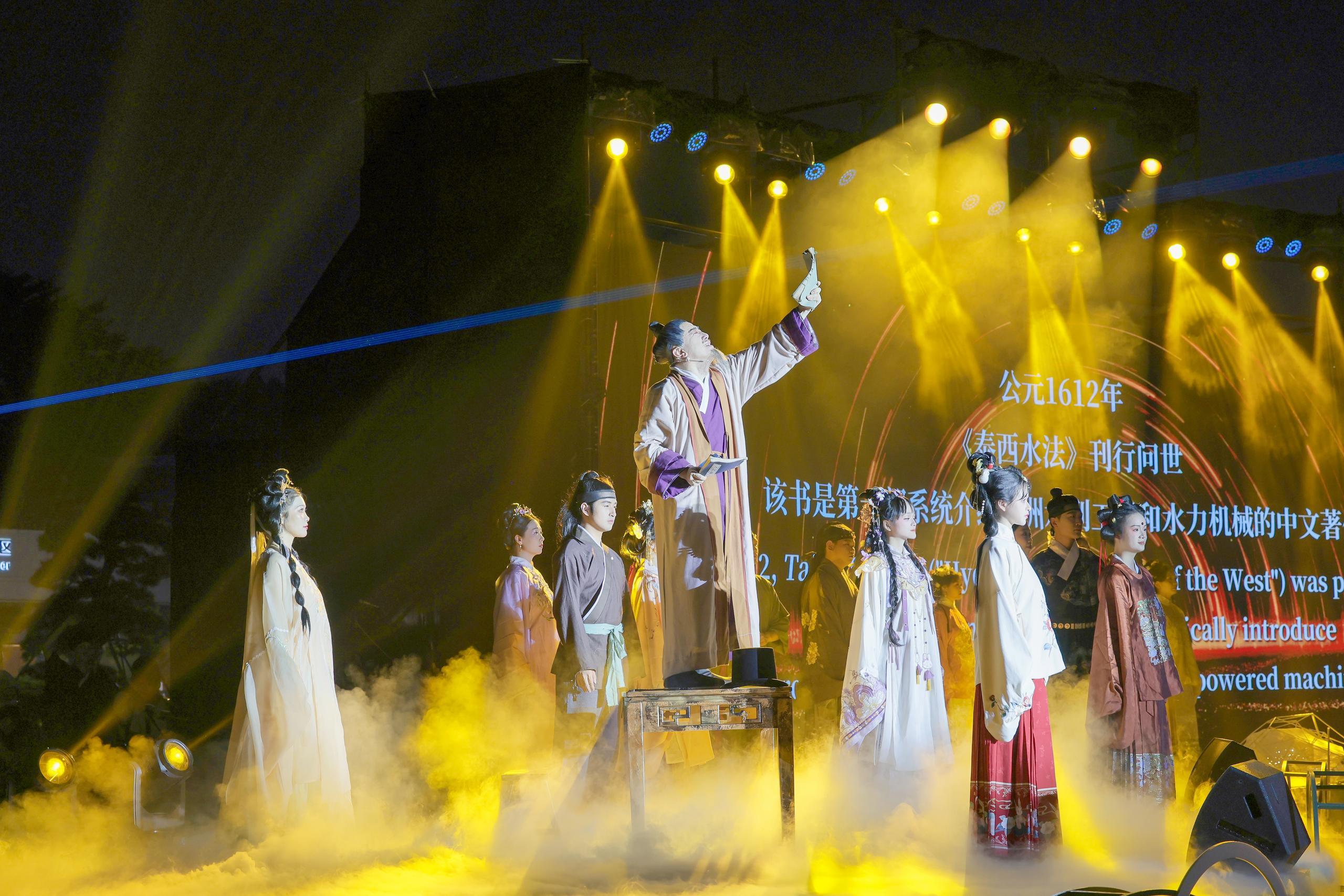 今年的创新,首先体现在表达方式的“破壁”。开幕式不再沿用传统的歌舞晚会形式,而是打造为一场观众可走进的“时空剧场”。《繁星几何》以徐光启与利玛窦合作翻译《几何原本》的故事为主线,通过“戏剧+场景+互动”的方式,让历史人物“走”到观众身边。当LED屏幕上星河流转,利玛窦与徐光启的光影隔空对话,四百年的文明交流史仿佛在瞬间被浓缩、被感知。