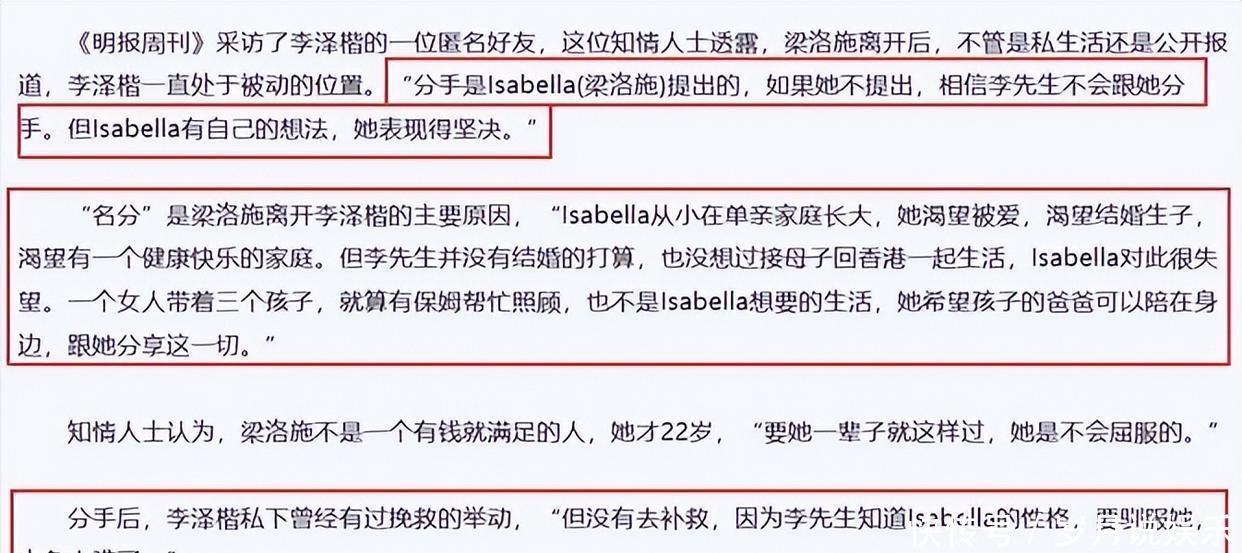 外界也普遍认为,是梁洛施想要名分,可李家不同意,梁洛施心寒才选择分手的。
