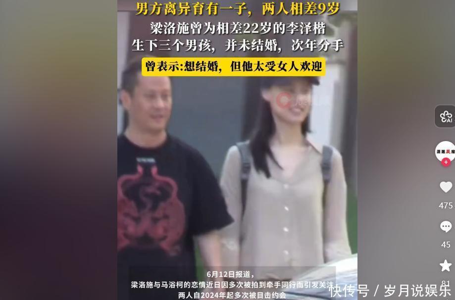 如今37岁的梁洛施把孩子们都养大,她也有了新的生活,最近在和圈内人士马浴柯恋爱。