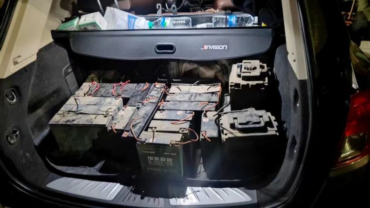 10月22日凌晨,凌源市公安局南街派出所警力在巡逻过程中发现一名男子形迹可疑,通过工作民警发现该男子驾驶电瓶车停到一辆SUV旁,另一名男子下车打开后备箱,协助其将运送的几块电瓶装入车内。不久后,又有一名男子驾驶电瓶车赶来,同样将几块电瓶装入该车内。此时,车内已存放大量电瓶。民警判定,这极有可能是一个盗窃电瓶车电瓶的团伙。随即,一边与刑侦大队和巡特警大队联系警力支援,一边继续跟踪加以确认。
